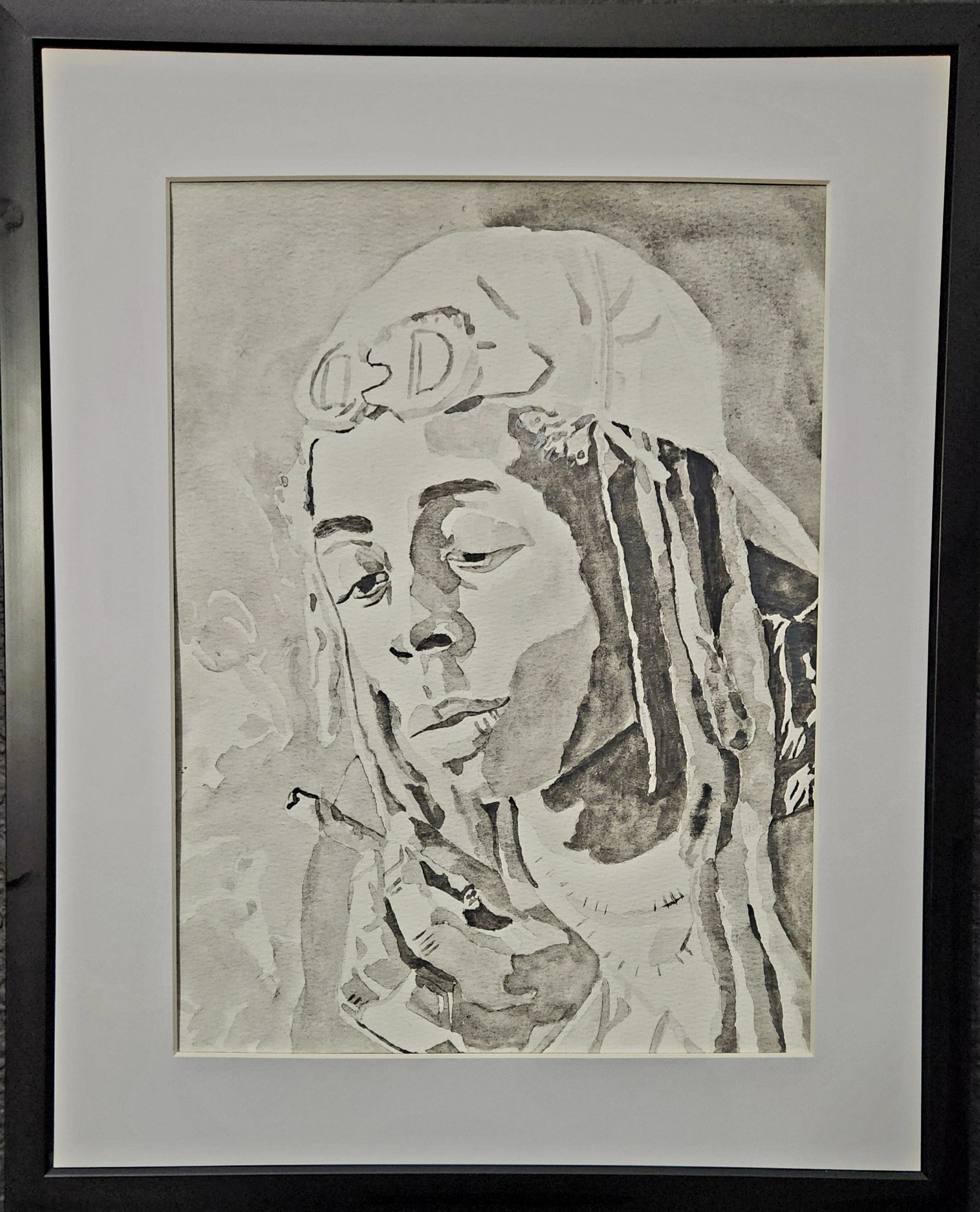 This hand-painted black and white watercolor captures Lil Wayne in a signature moment—cool, composed, and deep in thought with a blunt in hand. The subtle gradients and rich shadows bring out the raw vibe and presence that defines his legendary persona. A striking piece for fans of hip-hop, street culture, and original art.