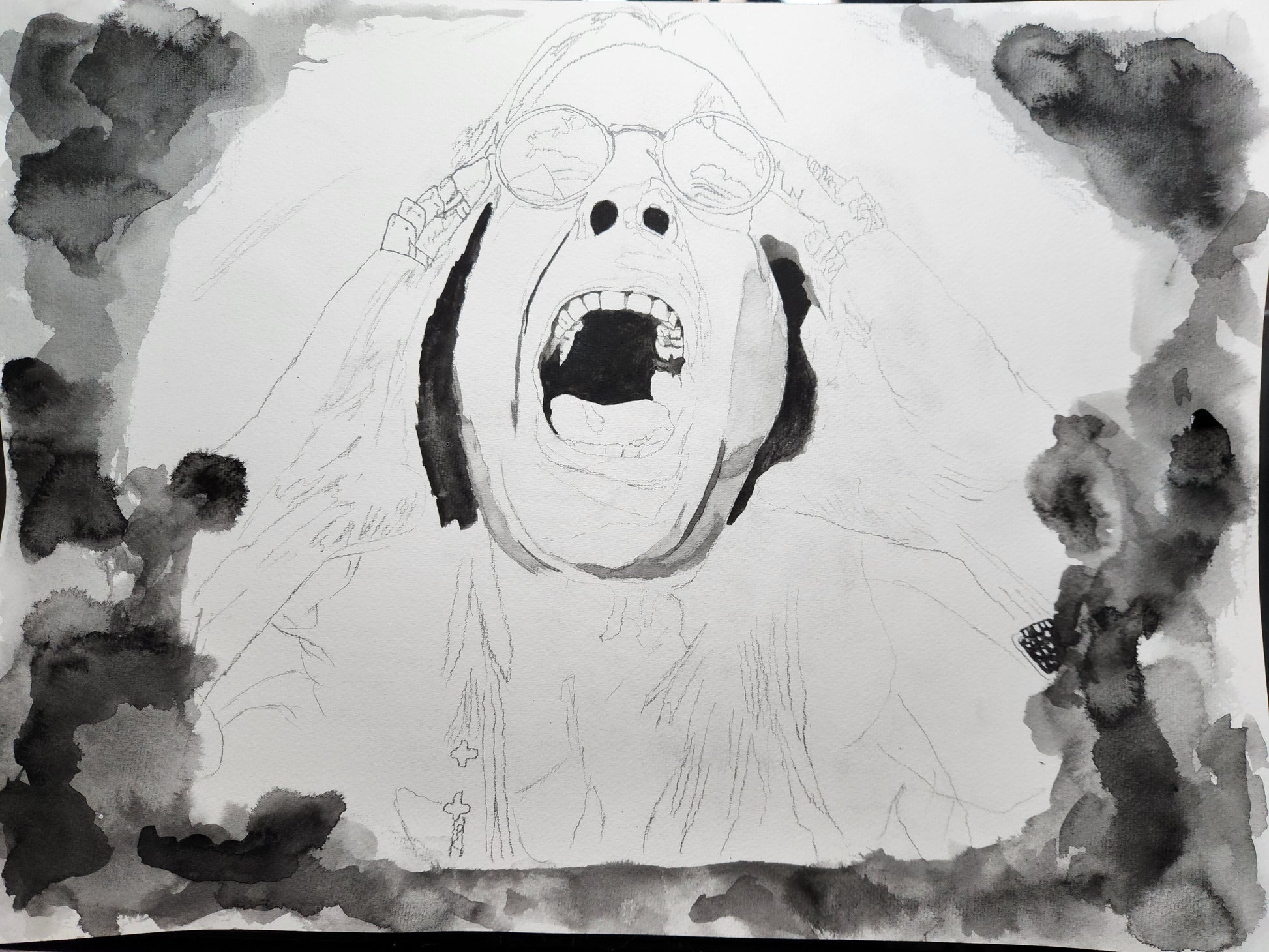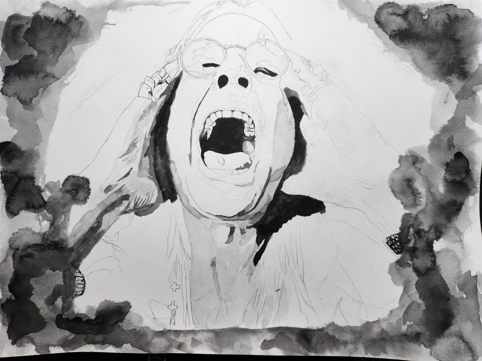 "Scream for Me" – Black & White Watercolor Portrait - 17x11 Print
